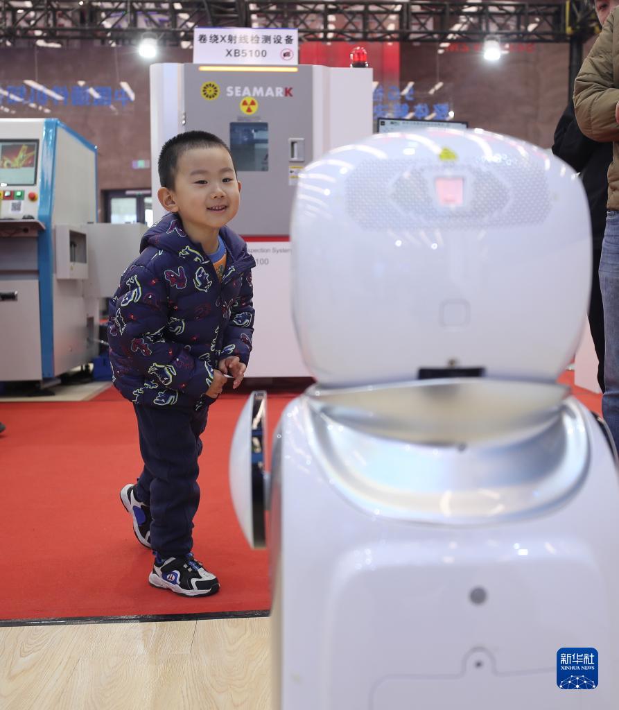 4月8日,小朋友在2023中國中小企業發展大會“專精特新”中小企業展覽會上參觀機器人。新華社記者 龍雷 攝