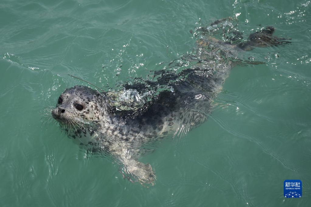 放歸大海的西太平洋斑海豹。新華社記者潘昱龍 攝