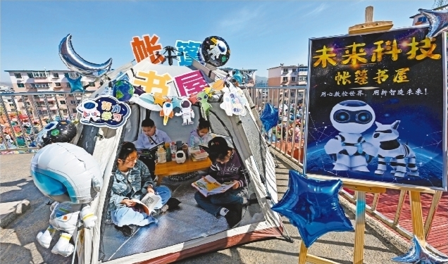 “世界讀書日”和我省第十二屆全民讀書節即將來臨,全省各地紛紛舉辦豐富多彩的活動,掀起全民閱讀的熱潮。操場上“軍事之家”“科技小屋”等近200個“書窩”各具特色,展現了豐富的創意和主題。孩子們或沉靜閱讀,或以書會友,濃郁的書香溢滿校園。(記者 車曉丹 林林)