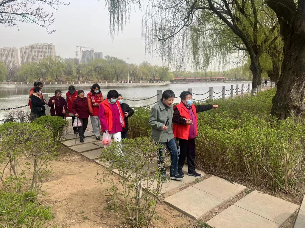 志愿者們帶領盲、殘老人在沈陽市勞動公園“賞春”。(受訪者供圖)