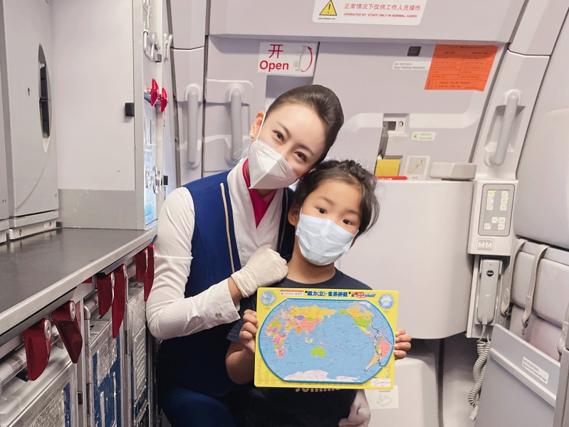 4月22日,是第53個世界地球日,南航北方分公司客艙部“銀燕”共青團乘務組在沈陽飛往廣州的CZ6301航班上,開展“社會責任日”主題航班活動,在航班上,乘務員通過講解環保知識、與小朋友拼插世界地圖等方式,倡導旅客綠色飛行,低碳出行。