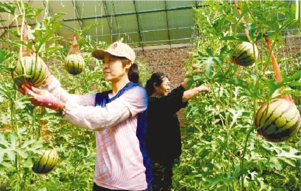 西瓜吊著種效益頂呱呱