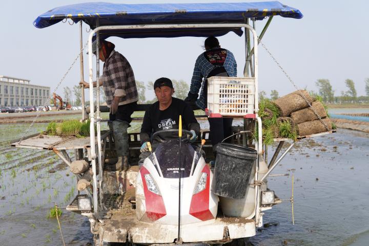 在遼寧省盤錦市興隆臺區,農戶正在進行機械插秧。新華社記者武江民攝