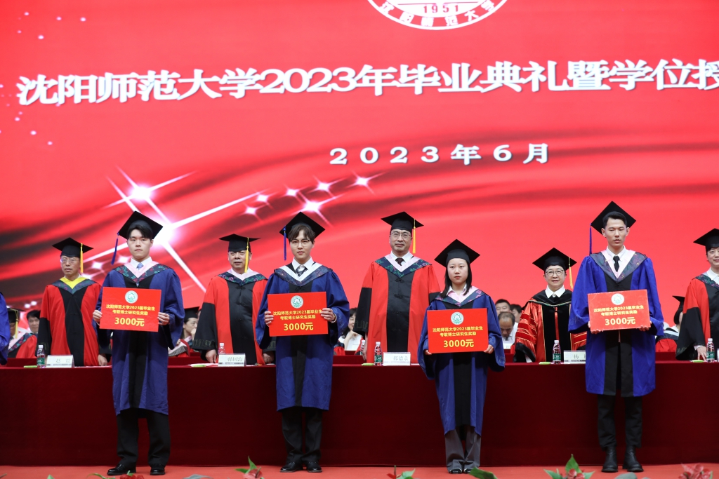 今年,沈陽師范大學共有4349名本科生、1296名碩士研究生和24名留學生畢業。在莊嚴而隆重的學位授予儀式上,校學位評定委員會主席、校長楊松教授為各專業畢業生代表撥流蘇、頒發學位證書,并留下珍貴合影。