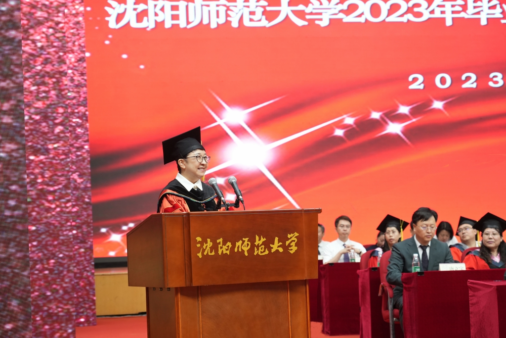 楊松校長在畢業典禮上真摯囑托、深情勉勵全體沈師畢業生,并對在求學期間踔厲奮發、篤行不怠,圓滿完成學業的同學們表示祝賀,向辛勤培養他們的父母老師以及關心和幫助他們成長的每一位朋友,表示衷心的感謝和崇高的敬意。