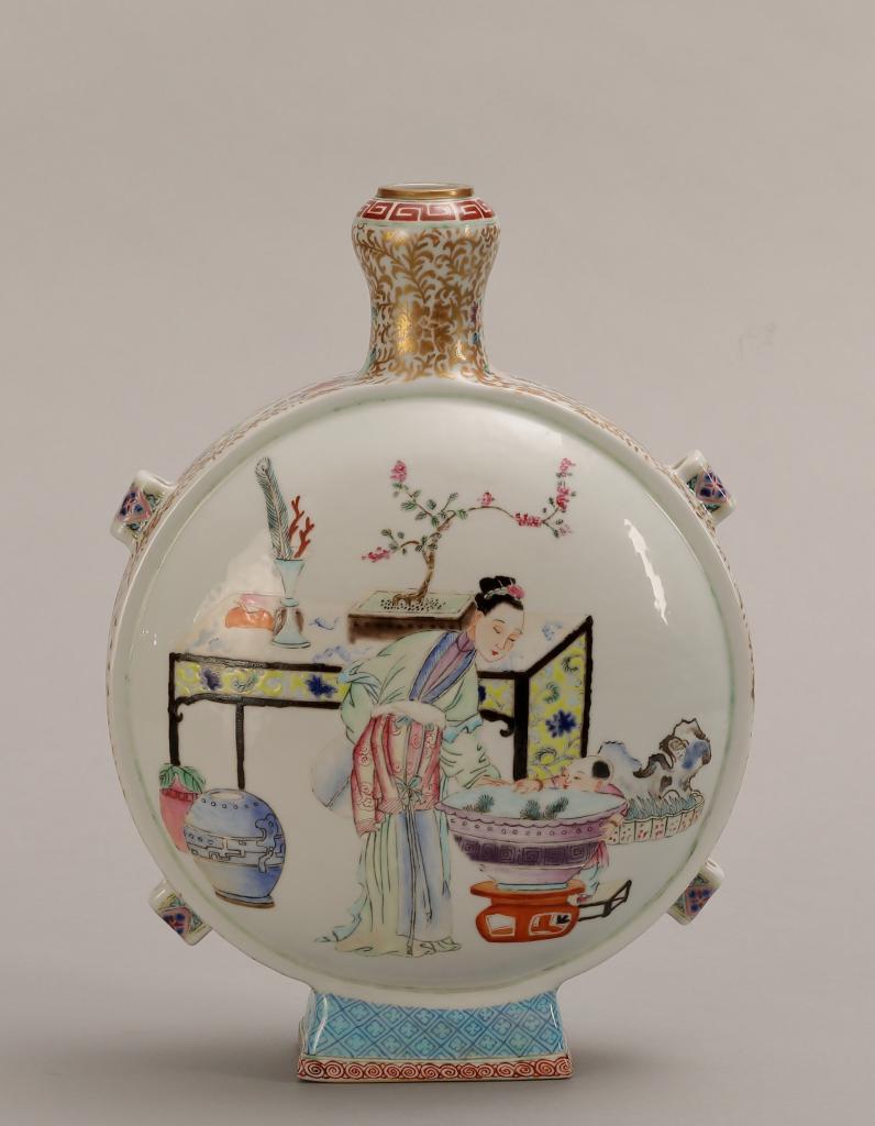 展出的清雍正粉彩嬰戲圖蒜頭扁瓶。沈陽故宮博物院供圖