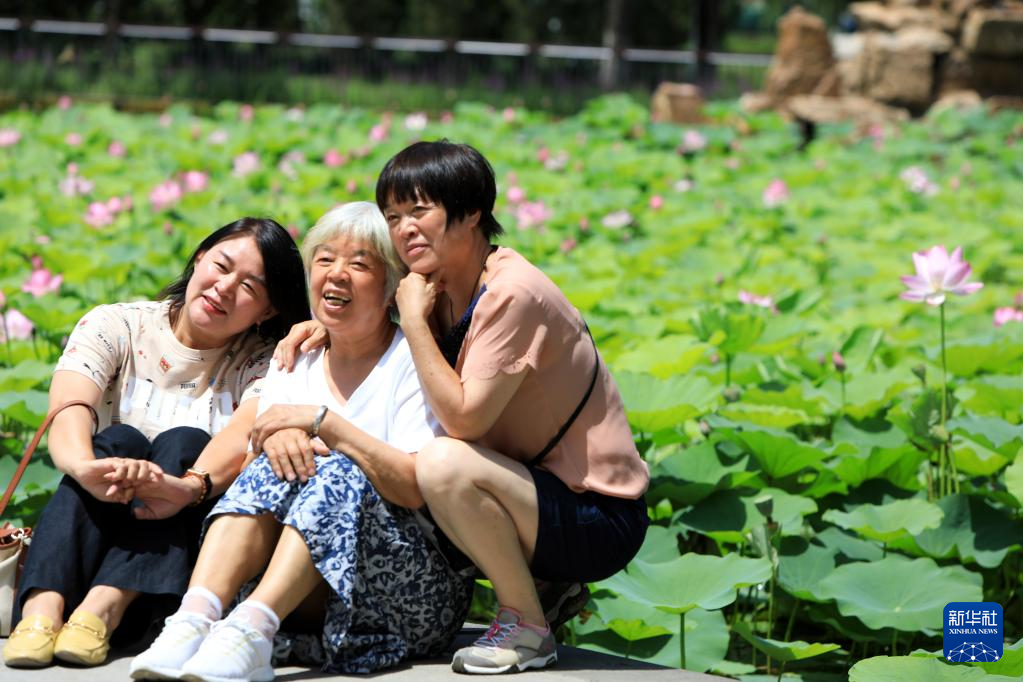 夏日,遼寧省沈陽市皇姑北塔公園荷塘的荷花競相盛放,吸引游人前來觀賞。pagebreak