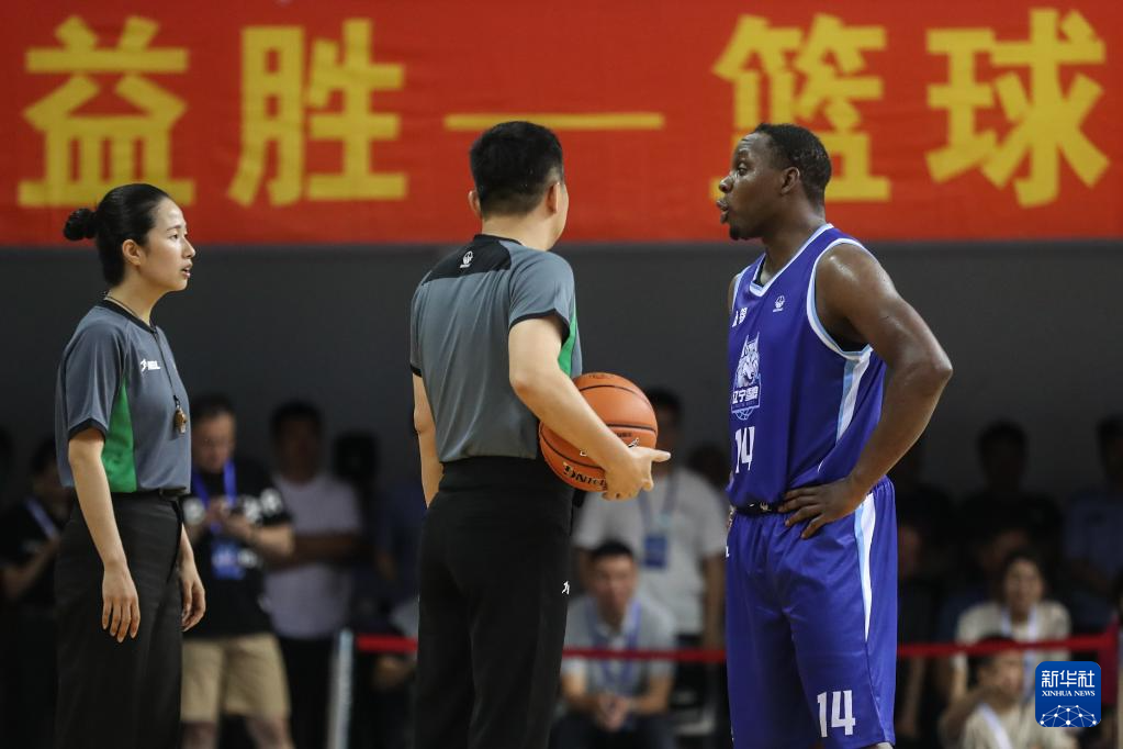 7月9日,遼寧益勝隊球員哈德森(右)在比賽中對判罰表示不滿。新華社記者 潘昱龍 攝