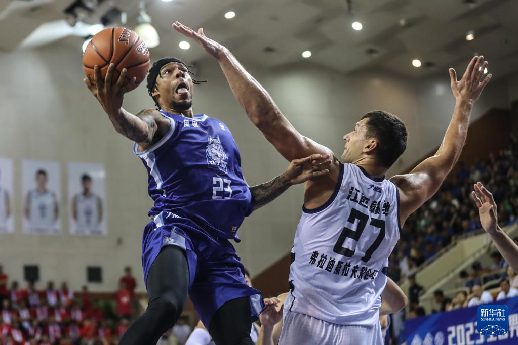 7月9日,江西贛馳隊球員加里納特(左)在比賽中上籃。新華社記者 潘昱龍 攝pagebreak