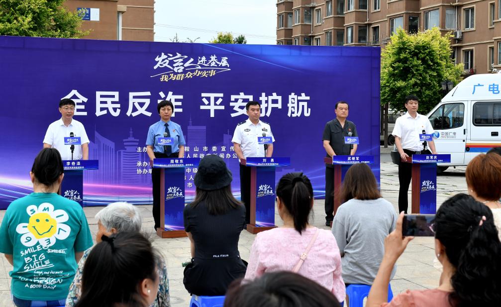 新華網沈陽7月14日電(記者李宇佳)13日,鞍山市委宣傳部(市政府新聞辦)在鞍山市千山區湯崗子街道泉興社區召開“全民反詐 平安護航”新聞發布活動,鞍山市公安局、市人民檢察院、市中級人民法院相關負責人走進社區,向百姓介紹鞍山市打擊治理電信網絡詐騙犯罪工作的進展,助力全民防范電信網絡詐騙。