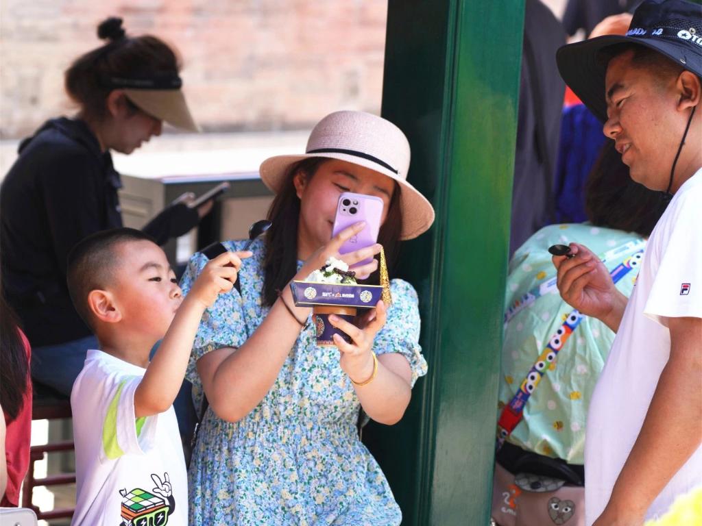 圖為游客打卡沈陽故宮新推出的文創冰淇淋。沈陽故宮博物院供圖。