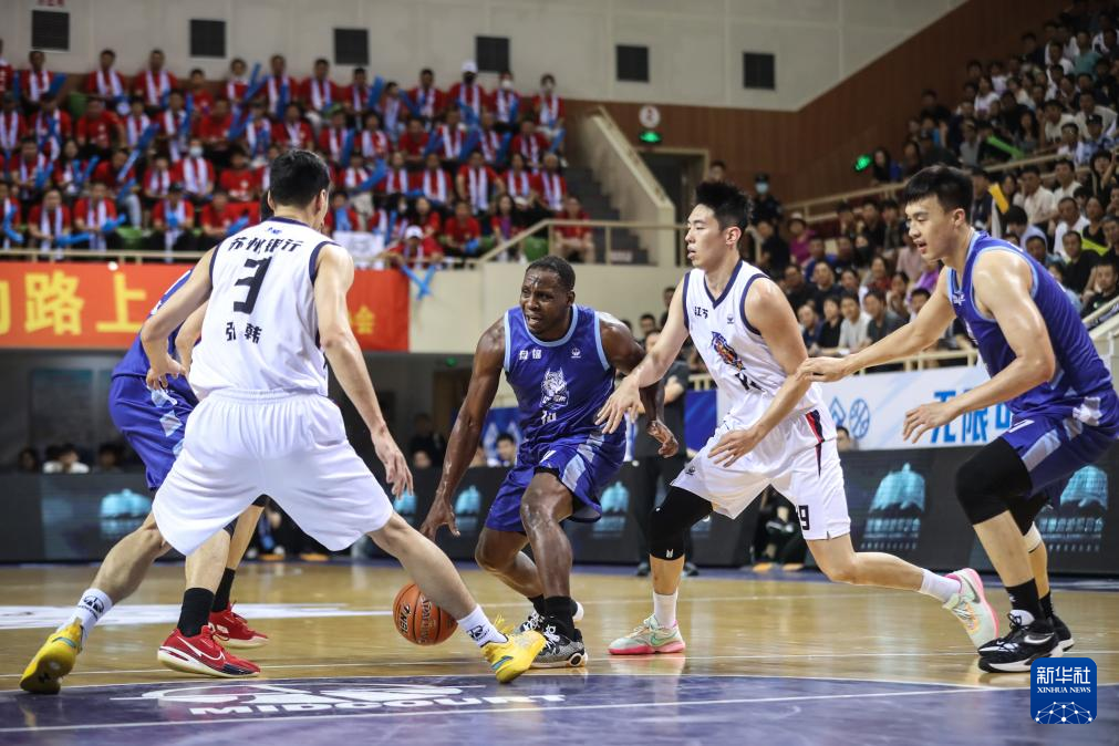 7月16日,遼寧益勝雪狼隊球員哈德森(中)在比賽帶球突破。新華社記者 潘昱龍 攝pagebreak