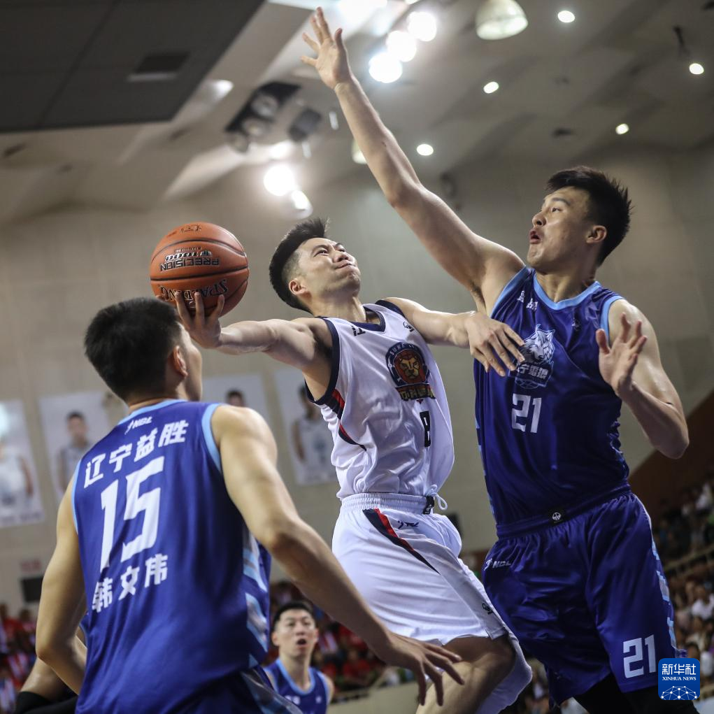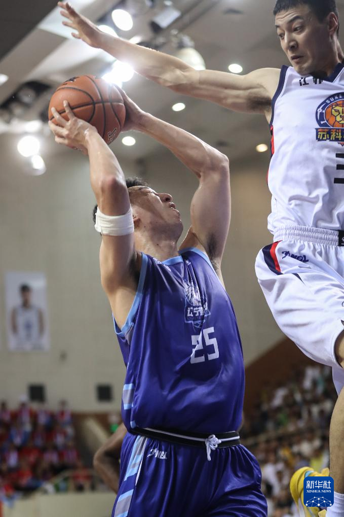 7月16日,遼寧益勝雪狼隊球員劉子豪(左)在比賽中上籃。新華社記者 潘昱龍 攝pagebreakpagebreak