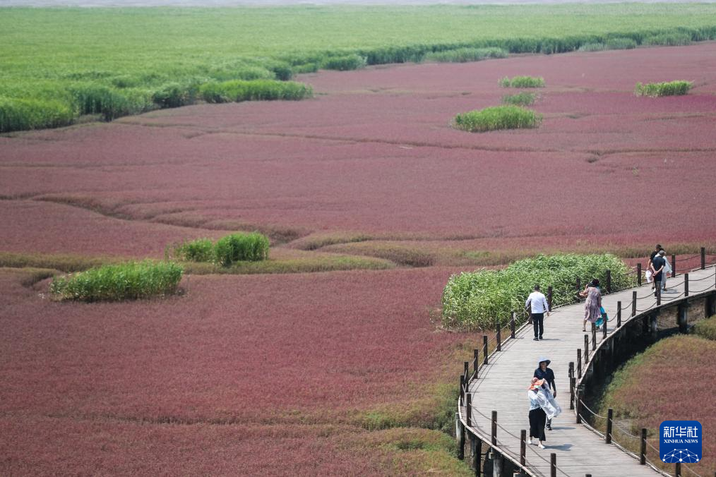 7月19日,游客在紅海灘國家風景廊道景區內游玩。新華社記者 潘昱龍 攝