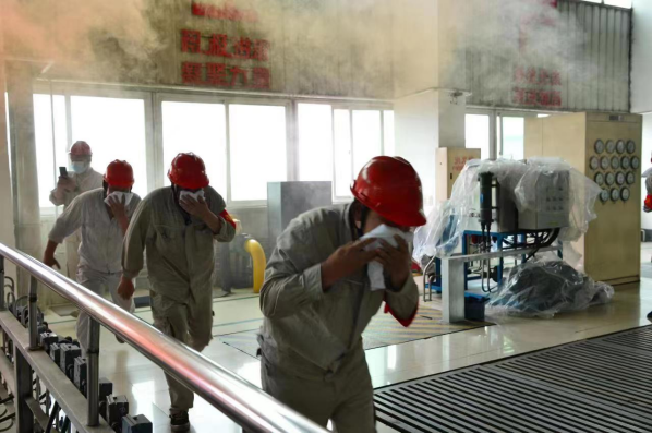 模擬火災現場,員工正疏散逃生