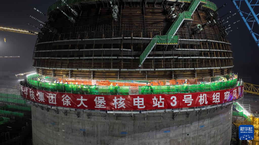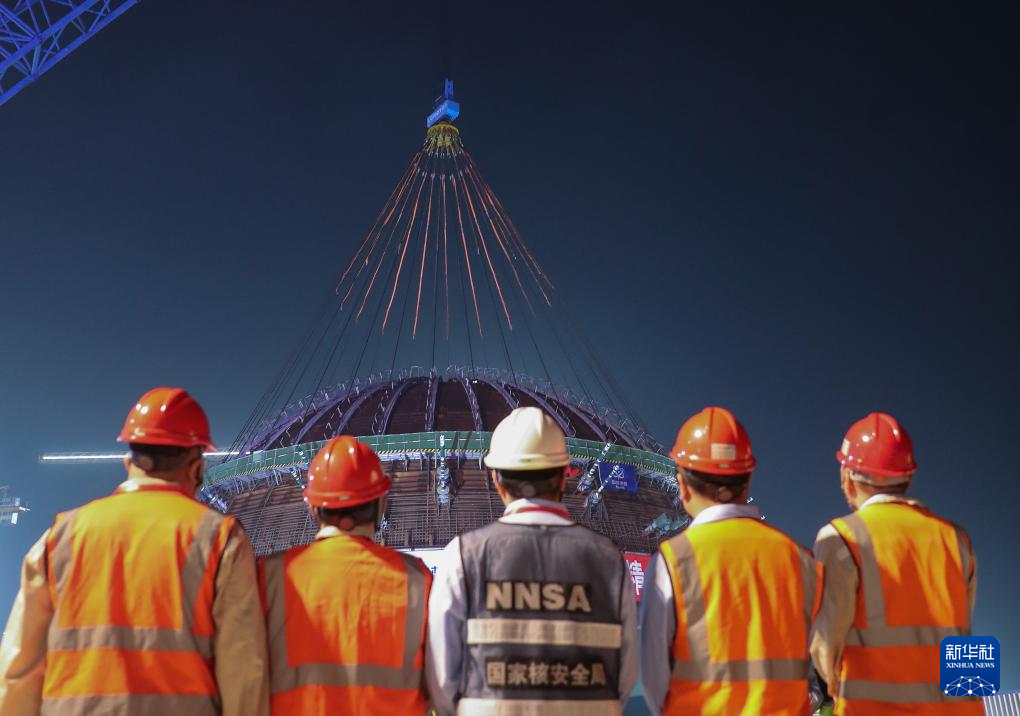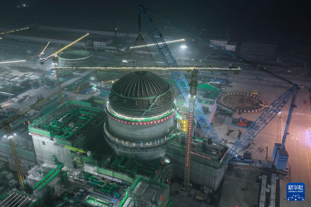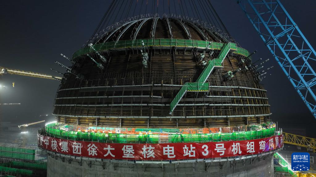 這是7月25日拍攝的徐大堡核電項目3號機組穹頂吊裝施工現場。新華社記者 龍雷 攝pagebreak
