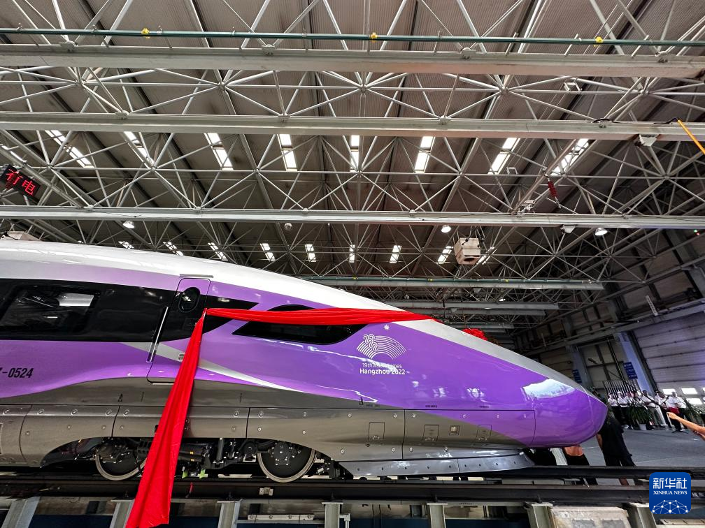 這是7月21日拍攝的復興號亞運智能動車組外觀。當日,復興號亞運智能動車組在位于吉林長春的中車長春軌道客車股份有限公司正式下線。新華社記者 馬曉成 攝