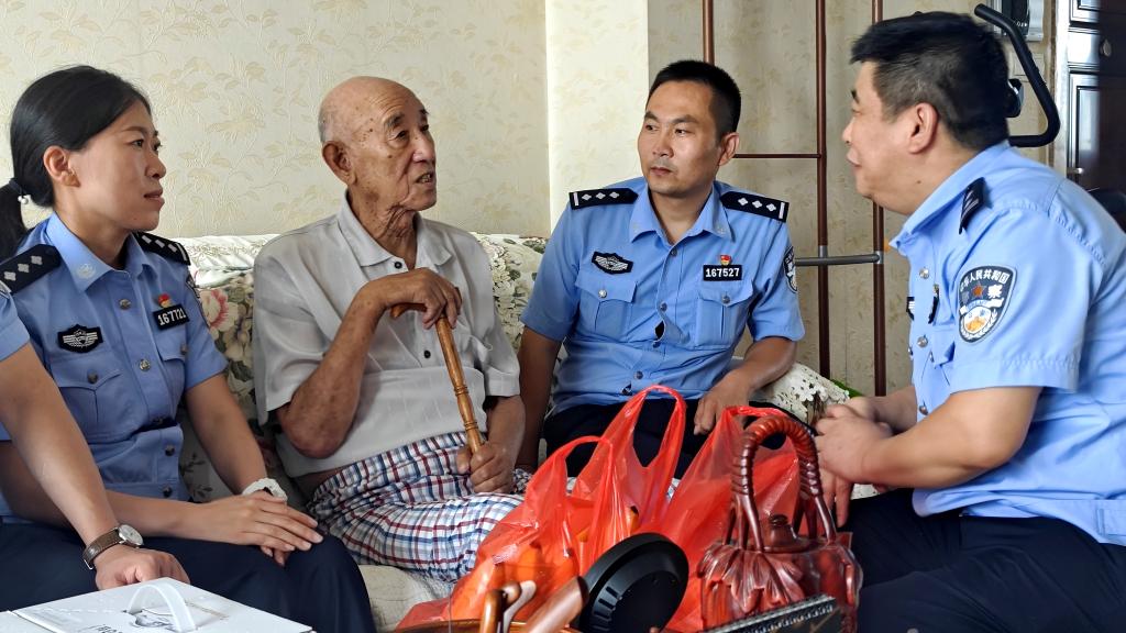 遼寧丹東邊境管理支隊鴨綠江邊境派出所民警到志愿軍老戰士家走訪慰問。(遼寧丹東邊境管理支隊供圖)