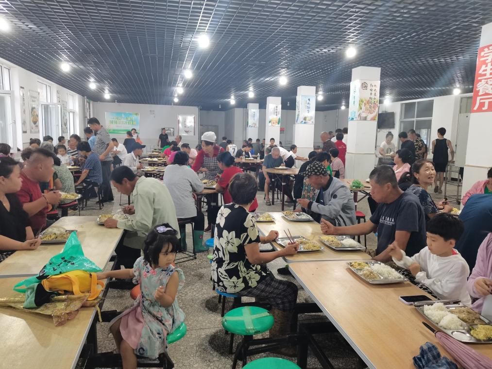 在岫巖滿族自治縣嶺溝鄉的集中安置點,被轉移的村民在就餐。(嶺溝鄉供圖)