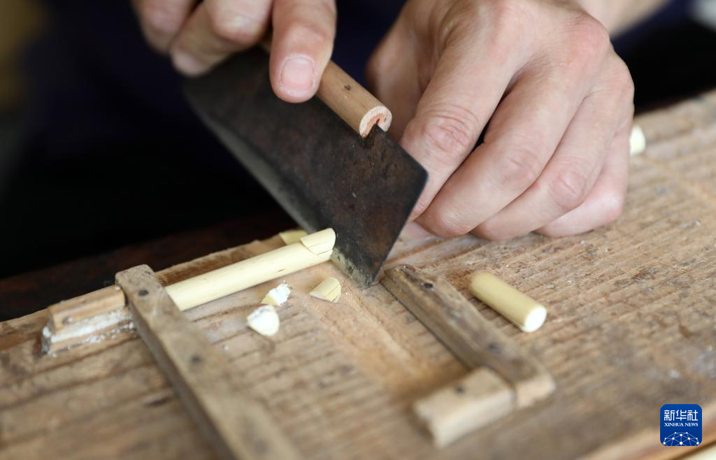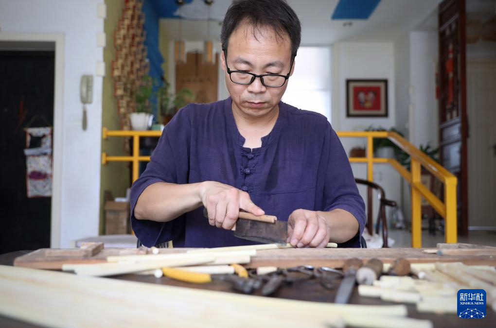 8月17日,崔凱在遼寧省營口市自己家中打磨吉祥輪彩紙風車骨架。新華社記者 姚劍鋒 攝pagebreak
