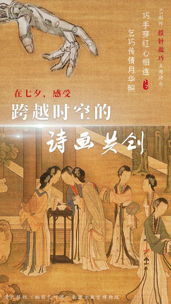 “你題詩、我作畫”是獨屬于中國文人的雅致浪漫。在七夕節,讓我們用 “古人作詩,Ai配圖”“古人作畫,Ai配詩”的方式,奔赴一場跨越時空的“詩畫相逢”。