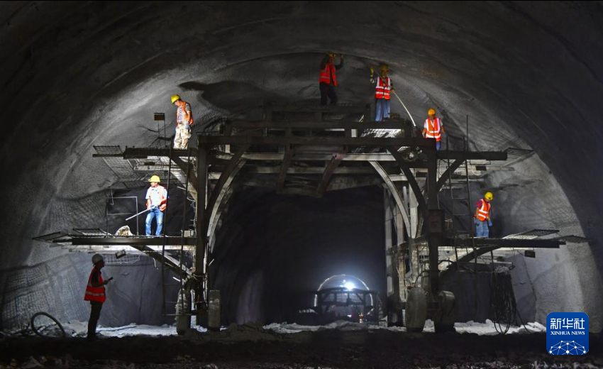 8月25日,中鐵十九局施工人員在沈白高鐵新賓隧道內施工。新華社記者 楊青 攝