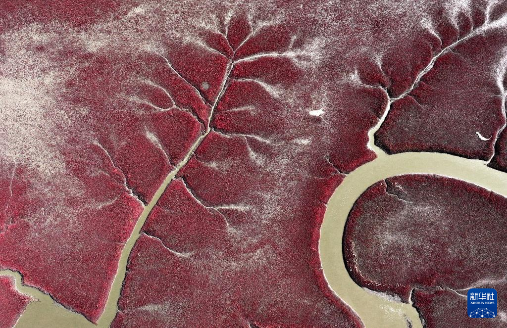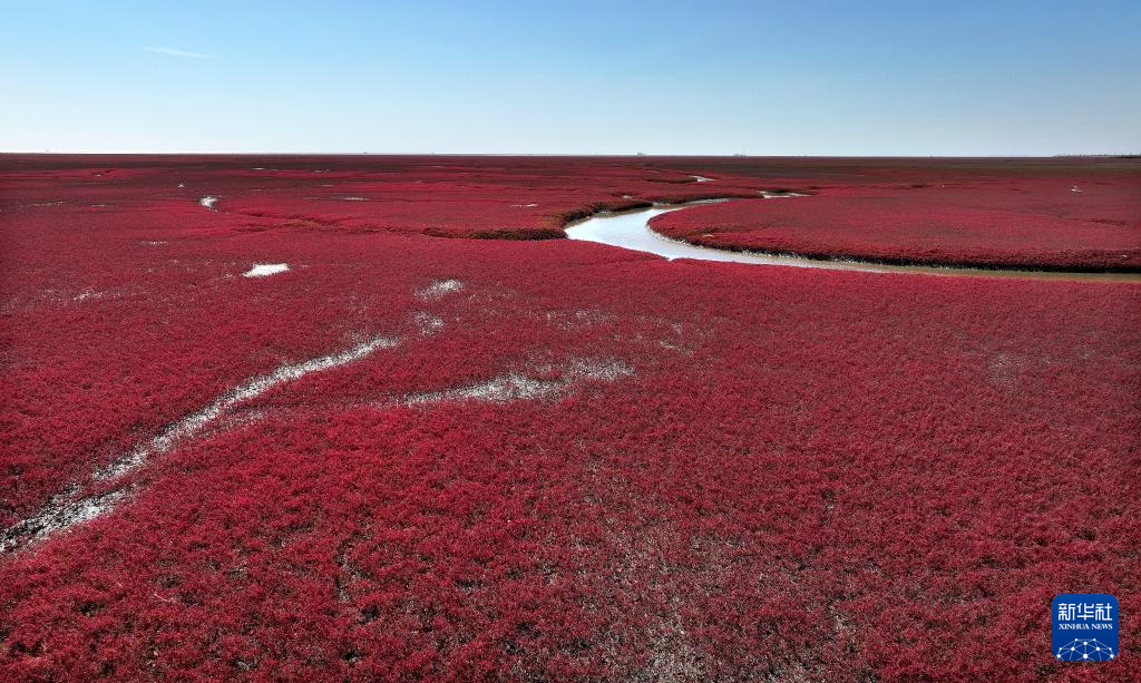 盤錦紅海灘國家風景廊道景區內的紅海灘(9月12日攝,無人機照片)。新華社記者 姚劍鋒 攝pagebreak