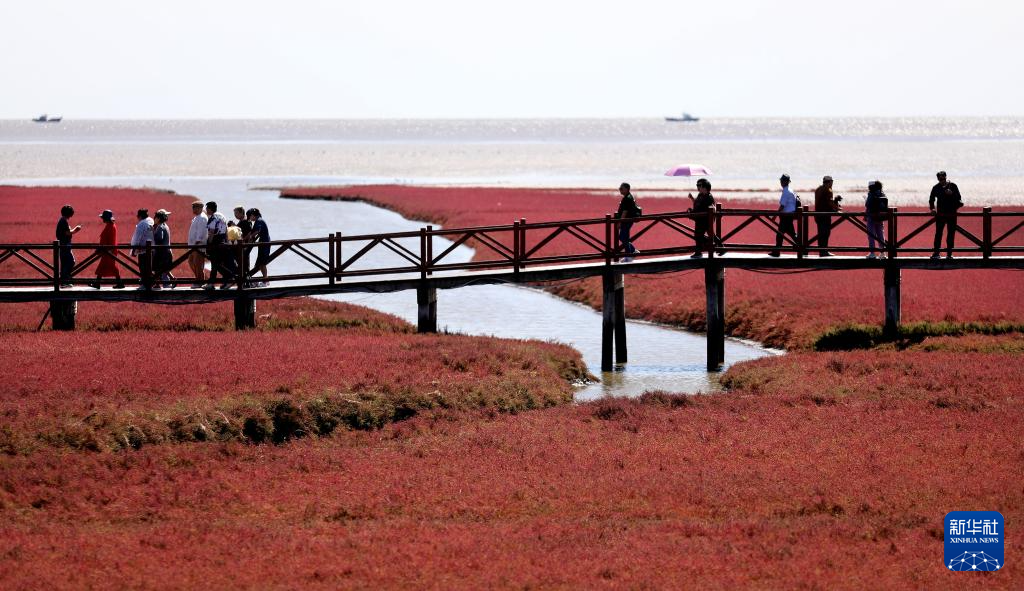 9月12日,游客在盤錦紅海灘國家風景廊道景區游覽。新華社記者 姚劍鋒 攝