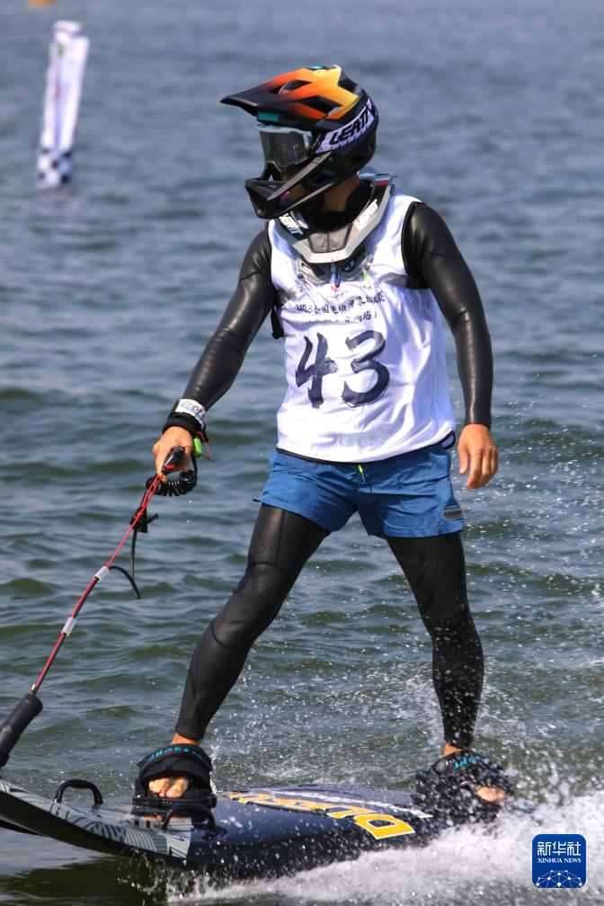 9月16日,江西隊選手袁松在專業組公開級:男子動力沖浪板環圈競速賽中。新華社記者 陳為 攝pagebreak