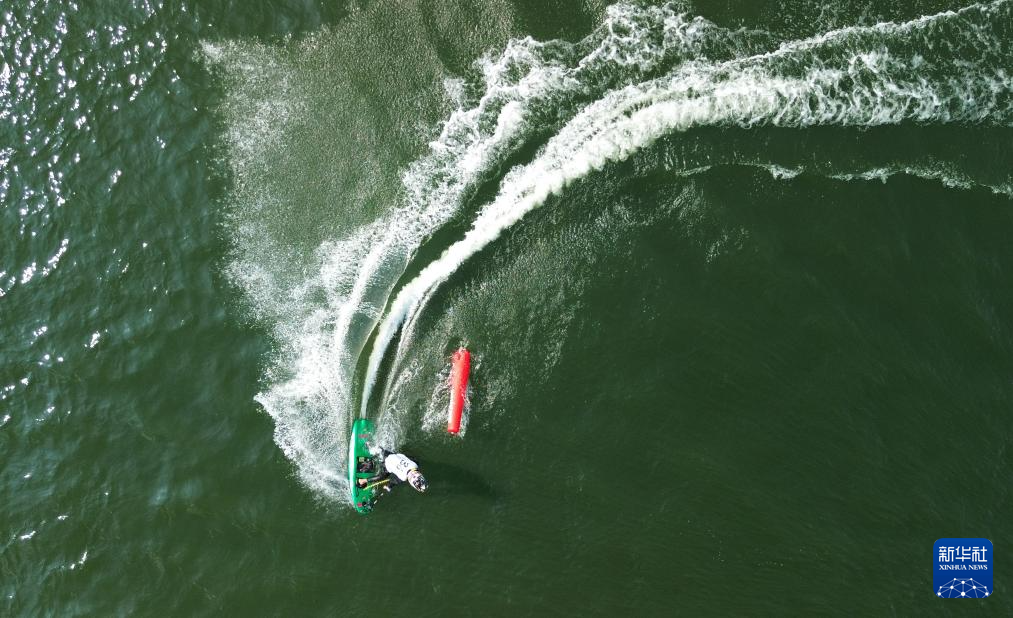 9月16日,賽格動力水上運動俱樂部隊選手鐘臣君在大眾組動力沖浪板障礙回旋賽中。新華社記者 陳為 攝pagebreak