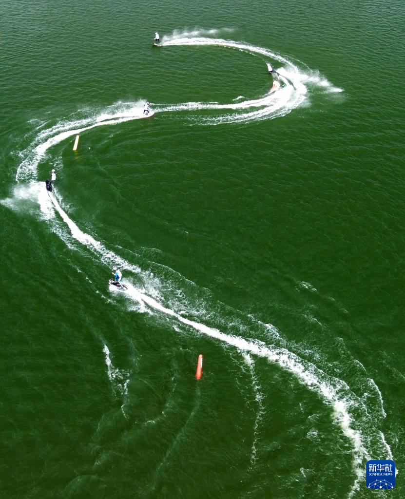 9月16日,參賽選手在比賽中(無人機照片)。新華社記者 陳為 攝pagebreak