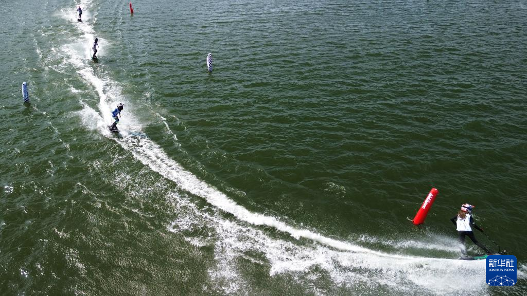 9月16日,參賽選手在U16男子&公開級女子電動沖浪板環圈競速賽比賽中。新華社記者 陳為 攝
