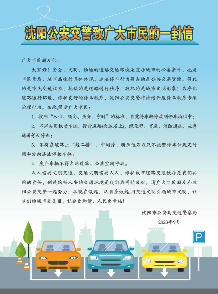據了解,此次行動,沈陽公安交警將聯合相關部門對全市范圍內的主次干路、支路、背街小巷等道路,包括公共廣場,實行全域全天候常態化停車秩序治理,對問題突出區域開展集中整治行動,亂停亂放“管凈”,廢棄機動車“清凈”,亂占公共車位“拆凈”。