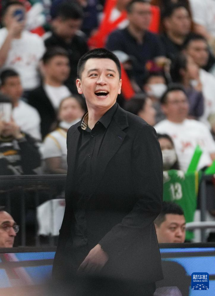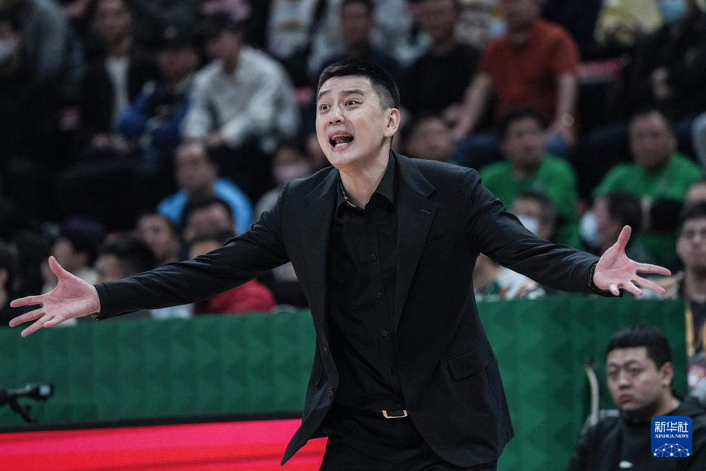 2022-2023賽季中國男子籃球職業聯賽(CBA)季后賽四分之一決賽首場比賽中,楊鳴在場邊指揮。新華社記者 潘昱龍 攝