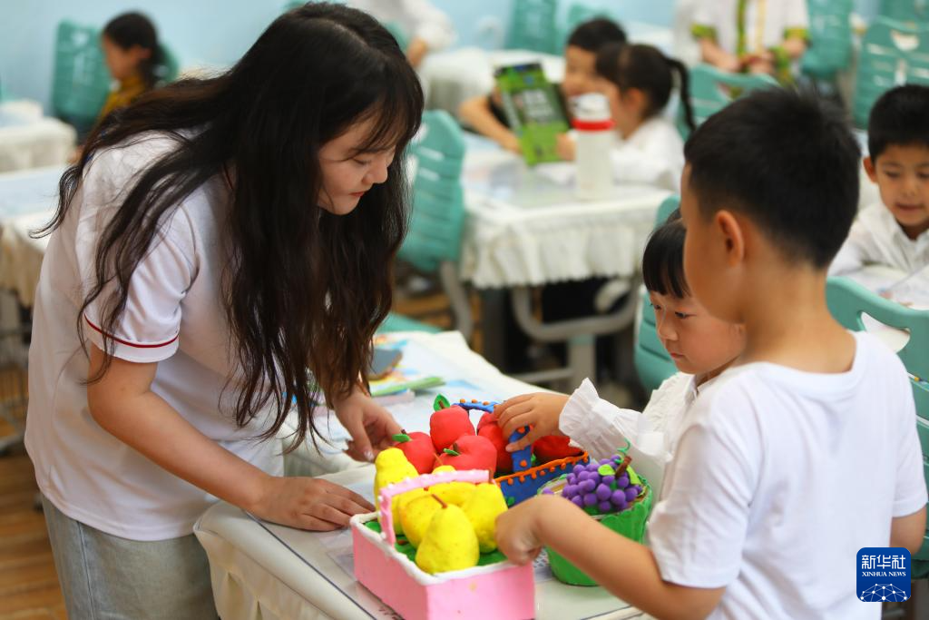 9月22日,孩子們在老師的帶領下制作以豐收節為主題的手工作品。新華社記者 陳為 攝pagebreak