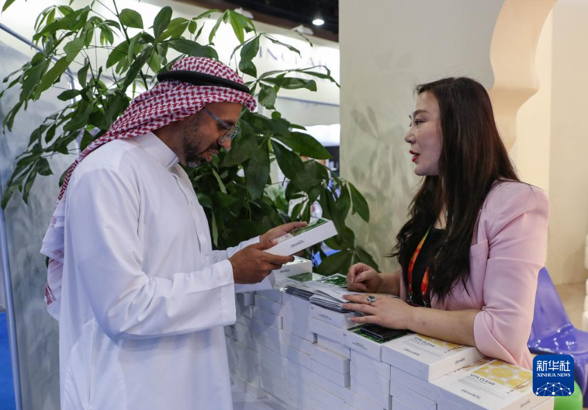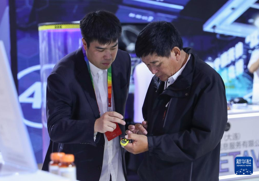 9月25日,參展商(右)在2023遼寧國際美麗健康產業博覽會上介紹產品。新華社記者 龍雷 攝