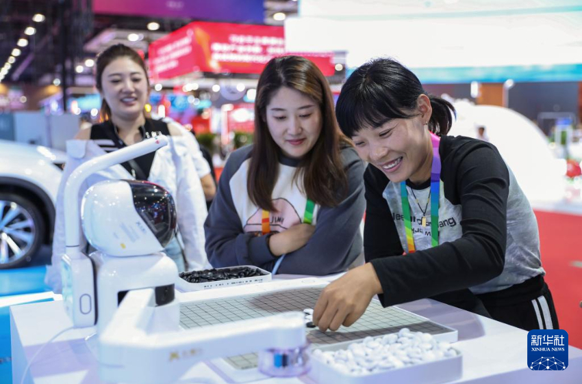 9月25日,工作人員在“數字賦能 智造未來”主題展覽上與機器人對弈。新華社記者 龍雷 攝pagebreak