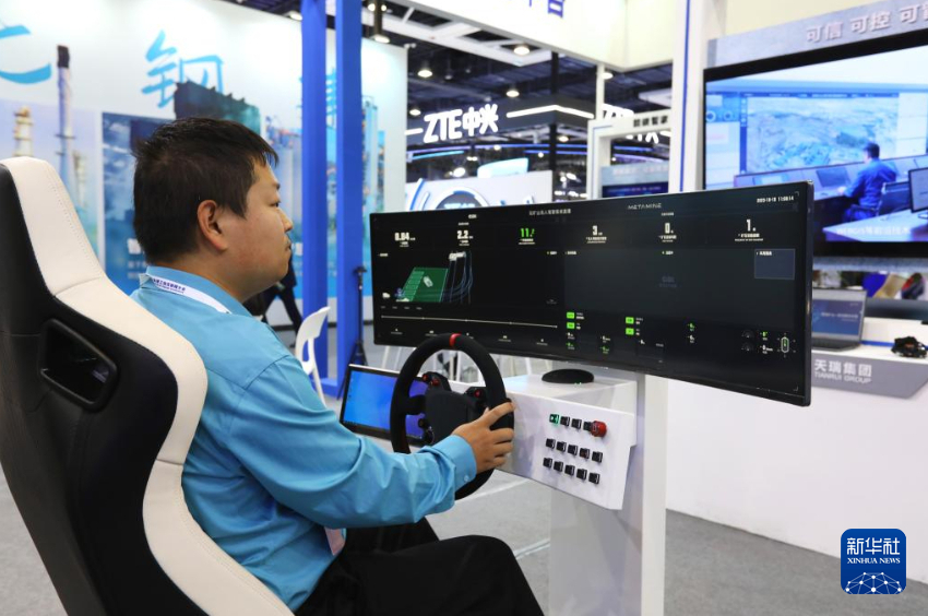 10月18日,參會企業工作人員在演示無人駕駛遠程駕駛艙。新華社記者 陳為 攝