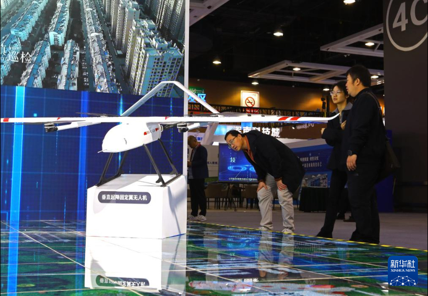 10月18日,參會者在參觀垂直起降固定翼無人機。新華社記者 陳為 攝pagebreak