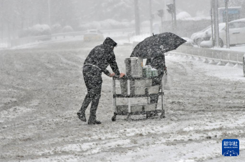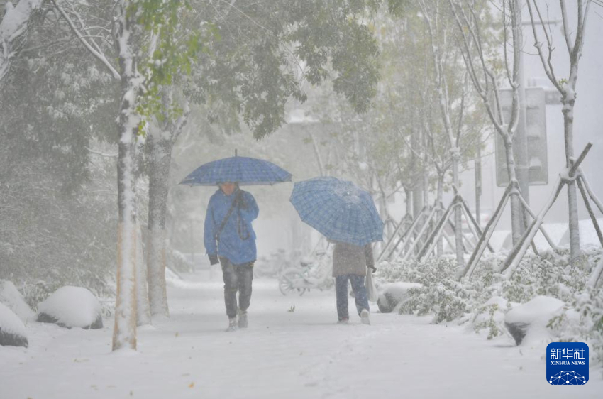 11月6日,在沈陽市渾南區,人們在雪中出行。新華社記者 楊青 攝pagebreak