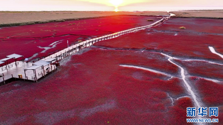新華網沈陽11月7日電(劉舒)葦海浩瀚,灘涂綿延。遼寧盤錦紅海灘國家風景廊道景區是國家5A級旅游景區,全長約18公里,被譽為“世界紅色海岸線”,也是“中國最北海岸線”。
