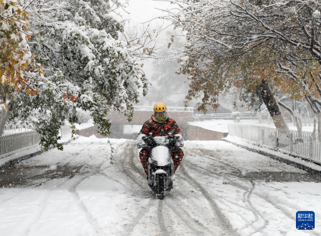 11月6日,在沈陽市渾南區,行人在雪中出行。新華社記者李鋼 攝