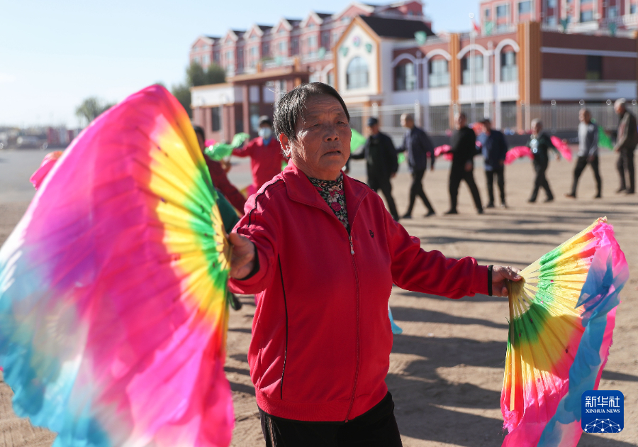 10月18日,居住在官營子村居家養老服務中心的老人在扭秧歌健身。新華社記者龍雷攝pagebreak