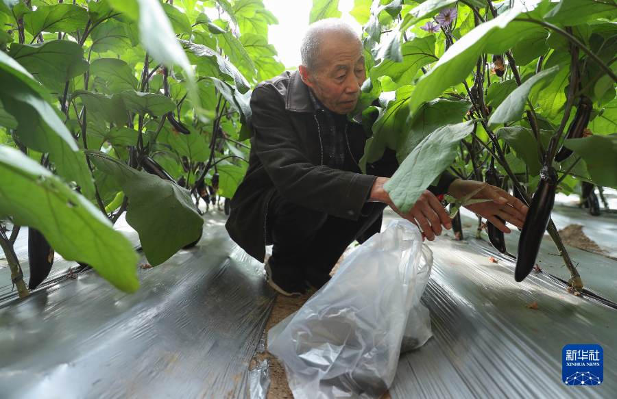 10月18日,居住在官營子村居家養老服務中心的老人在村中的蔬菜大棚中采摘蔬菜。新華社記者龍雷攝pagebreak