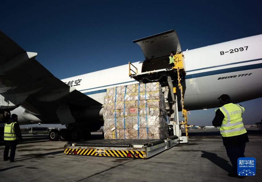 這是在沈陽桃仙國際機場拍攝的貨物裝機現場(11月13日攝)。新華社記者 李鋼 攝