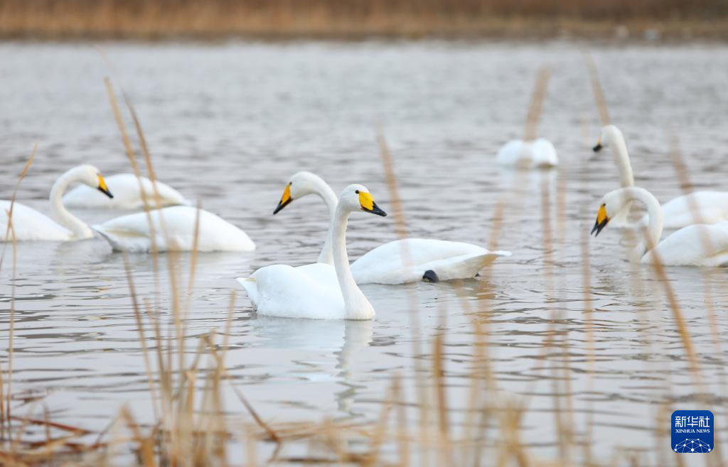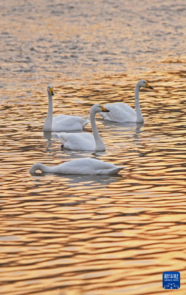 11月21日,天鵝在北票市八家子鄉紅村天鵝灣棲息覓食。新華社記者 陳為 攝