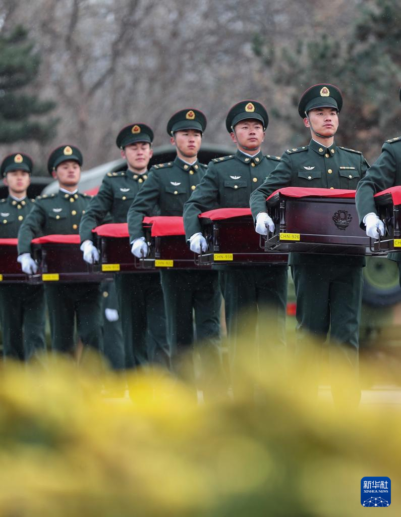 11月23日,志愿軍烈士遺骸抵達沈陽抗美援朝烈士陵園。新華社記者 楊青 攝pagebreak