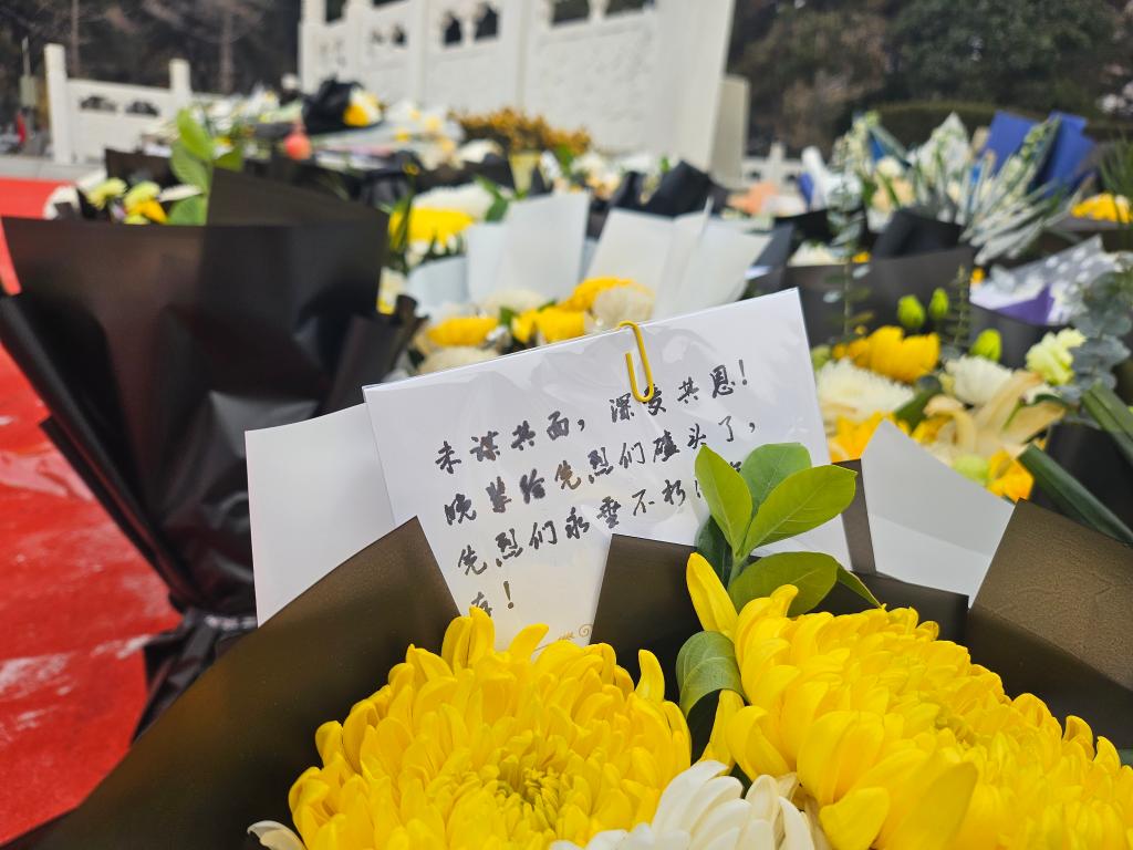 圖為群眾向烈士送來鮮花。受訪單位供圖