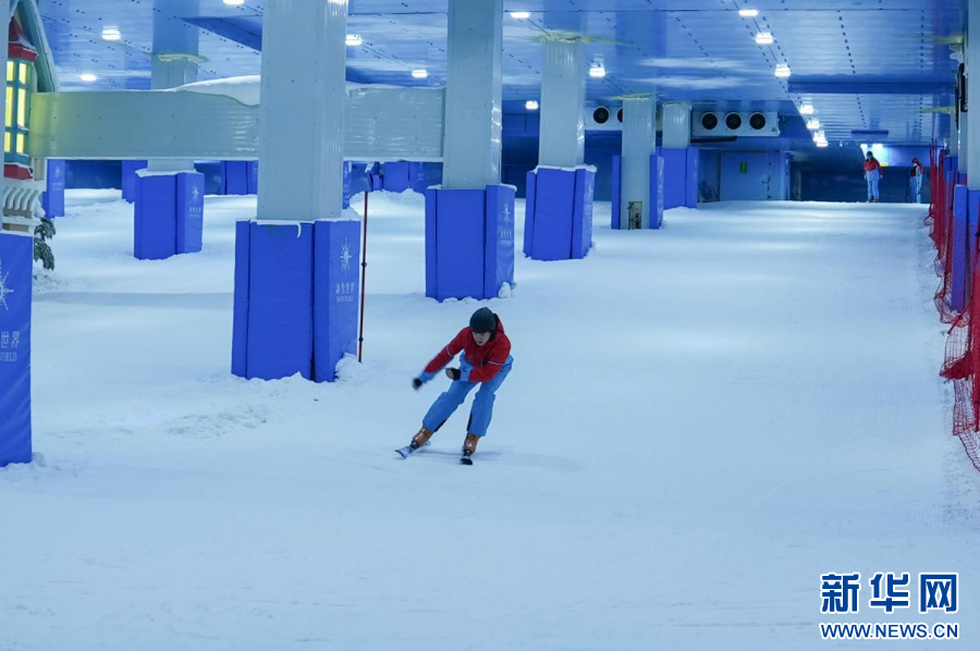 圖為游客在沈陽龍之夢龍悅冰雪世界室內滑雪場滑雪。新華網許志康攝pagebreak