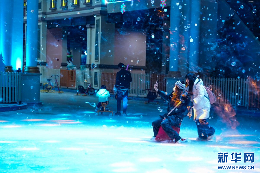 圖為游客在沈陽龍之夢龍悅冰雪世界游玩拍照。新華網許志康攝pagebreak